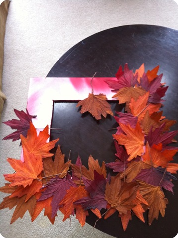 I was trying to think of a cheap way to do this project and I remembered some packets of leaves I bought at the Dollar Tree a few weeks ago for another project. I absolutely loved the colors, the texture, and they were large – perfect for this project!
