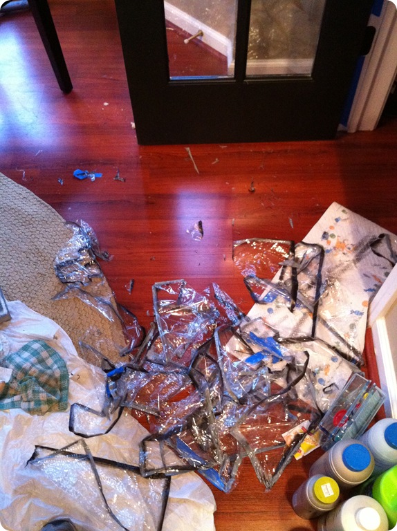 Oh I forgot to mention my least favorite part of the whole project…taking the plastic off the glass: