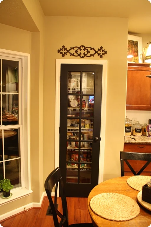 Bonus for painting the pantry door black: your eye isn't attracted to your food items as a "window" since your windows are white. It's like a visual distinction between looking outside and not looking outside.